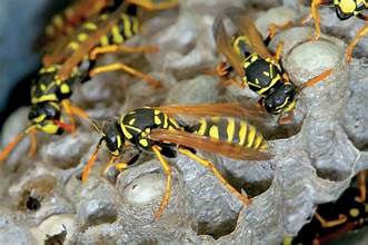 Yellow jackets typically build their nests using pieces of wood, logs, or other sources and chew it to form a papery pulp. This pulp is shaped into layers that form the nest’s structure which is protected by an outer envelope. They build underground in abandoned rodent burrows, inside wall voids, attics, sheds, and hollow trees. They prefer dark, protected places that provide easy access to food sources and water .