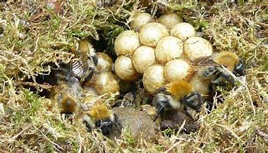Bumble Bees: Bumblebees are large, black and yellow and somewhat hairy bees. They are close relatives to the honeybee but behave very differently. Most species of bumblebee live in colonies, but their colonies are much smaller than the honey bees or wasps. A large honeybee colony can top 60,000 bees while a bumblebee colony is closer to 150.